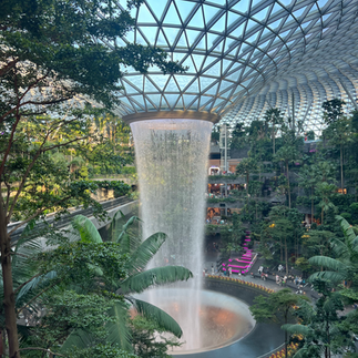 なんと、シンガポール空港の近くにある、ジュエルチャンギ空港(Jewel Changi Airport)という施設では、建物の中に大きな滝が流れているんです!